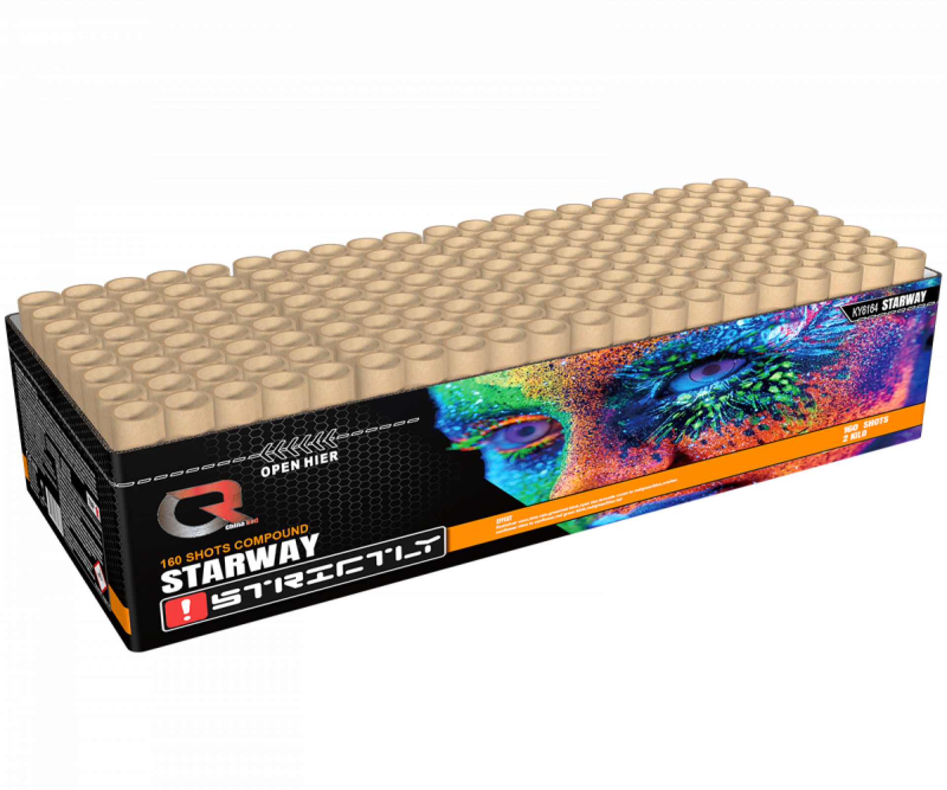 De Starway van China Red is een spectaculaire 160-schots compound die jouw vuurwerkshow naar een hoger niveau tilt. Met een kruitgewicht van 1984 gram en een brandduur van 100 seconden levert deze box een non-stop spektakel vol kleur, kracht en tempo.